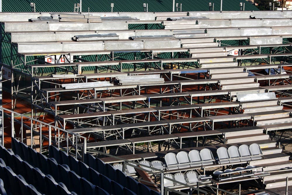 Aspeto do Court Central do ano passado, com lugares para o público apenas nas bancadas do lado esquerdo e inferior da imagem em baixo:
