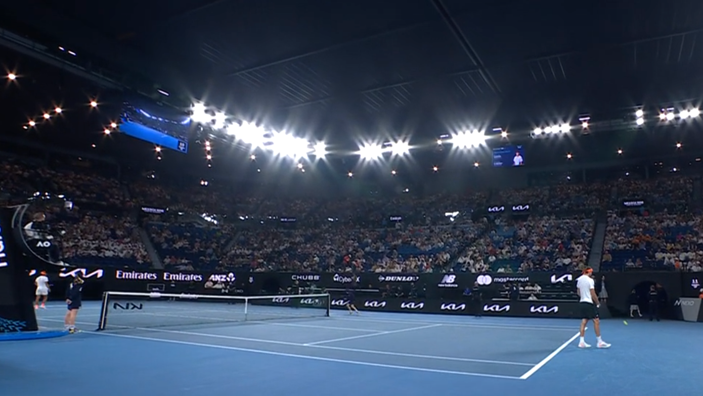 O encontro entre Alexander Zverev e Learner Tien no Open da Austrália está a ser disputado sob teto fechado, na sequência da ativação dos protocolos de calor extremo do torneio.
