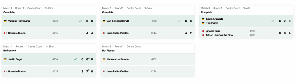 A Alemanha confirmou o favoritismo diante do Peru, vencendo a eliminatória por 4-0, numa prestação sólida tanto nos singulares como nos pares, sem conceder qualquer encontro ao adversário.