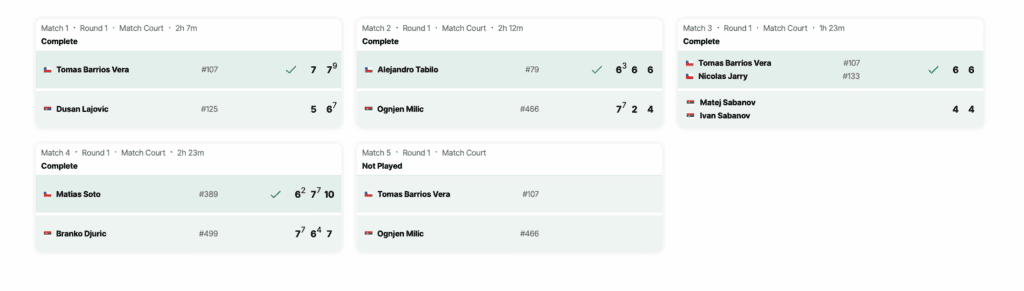 O Chile protagonizou uma das exibições mais convincentes da ronda, ao bater a Sérvia por 4-0, num duelo em que dominou claramente todos os encontros disputados, confirmando o bom momento do ténis chileno em competições por equipas.