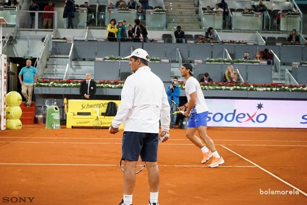 De passo apressado, chegámos ao court num tirinho, para assistir e registar o trabalho do tetracampeão do Masters de Madrid e nove vezes campeão de Roland Garros. Temos vídeo e temos fotografias: