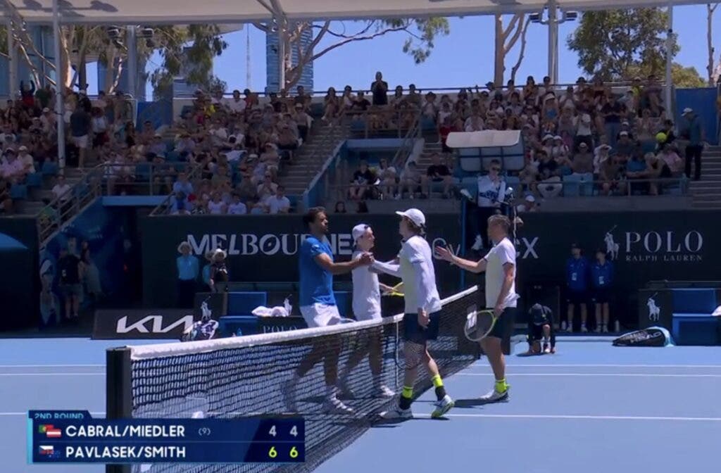 Francisco Cabral e o seu parceiro austríaco Lucas Miedler, nonos cabeças-de-série do Australian Open mas líderes da ATP Race à entrada deste torneio — foram campeões em Brisbane e semifinalistas em Auckland –, foram eliminados esta sexta-feira de forma surpreendente na segunda ronda do Australian Open 2026 e continuam sem conseguir transportar para os Grand Slams o grande nível que têm apresentado no circuito ‘regular’.