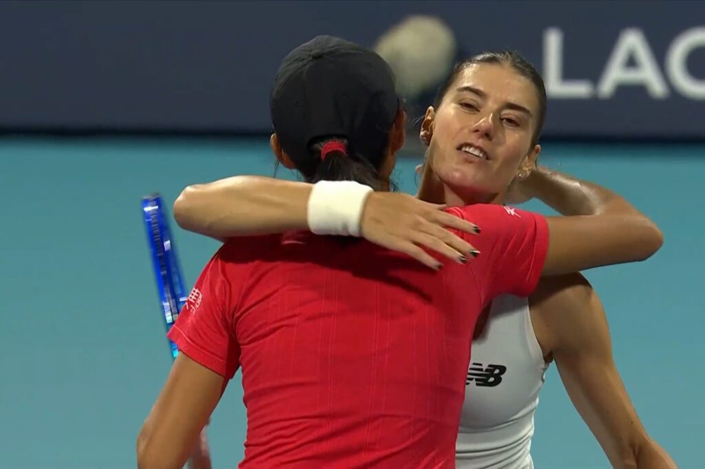 No final, as duas jogadoras protagonizaram um momento de fair play com um abraço à rede.
