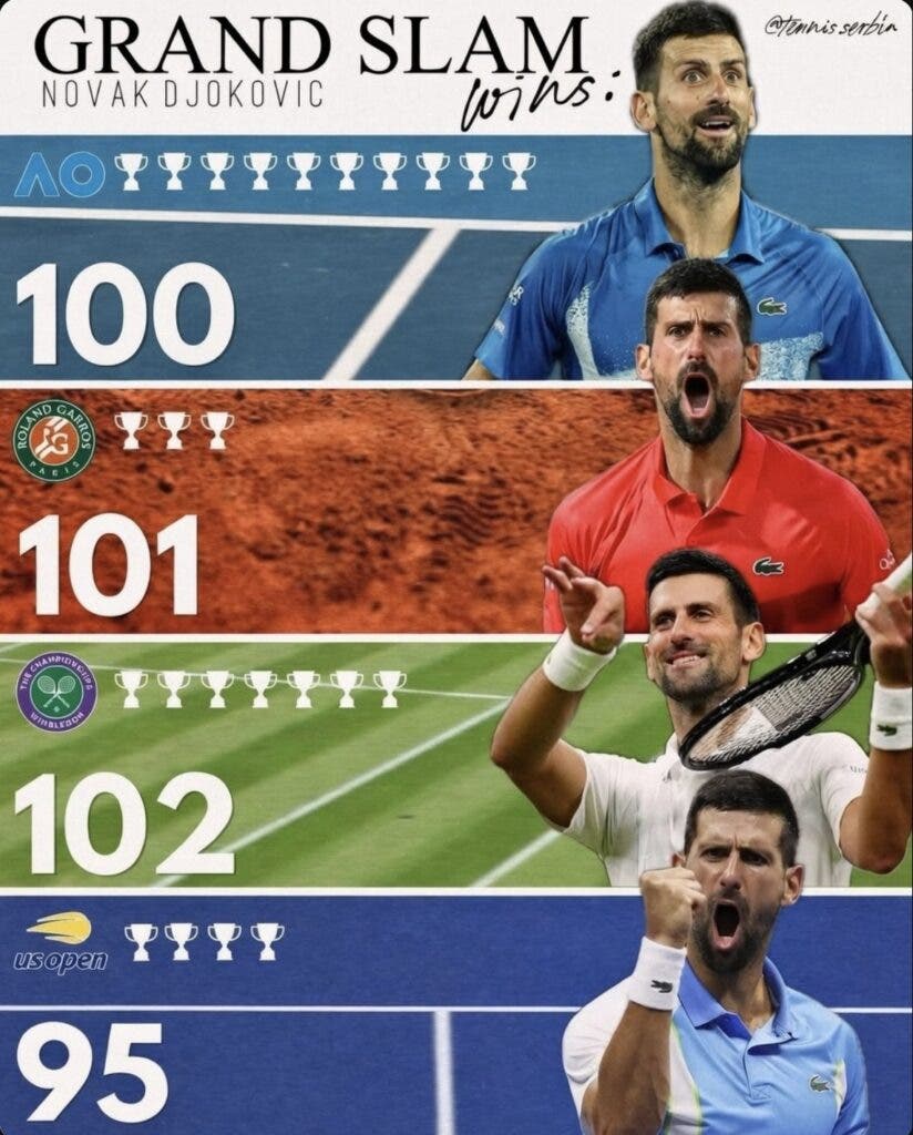 Novak Djokovic, 10 vezes campeão do Australian Open (24 títulos ao todo em Majors), atingiu esta segunda-feira mais uma marca histórica para a sua carreira, ao chegar às 100 vitórias no Happy Slam. É o terceiro Slam em que o sérvio de 38 anos atinge as 100 vitórias, uma vez que tem 101 em Roland Garros e 102 em Wimbledon…