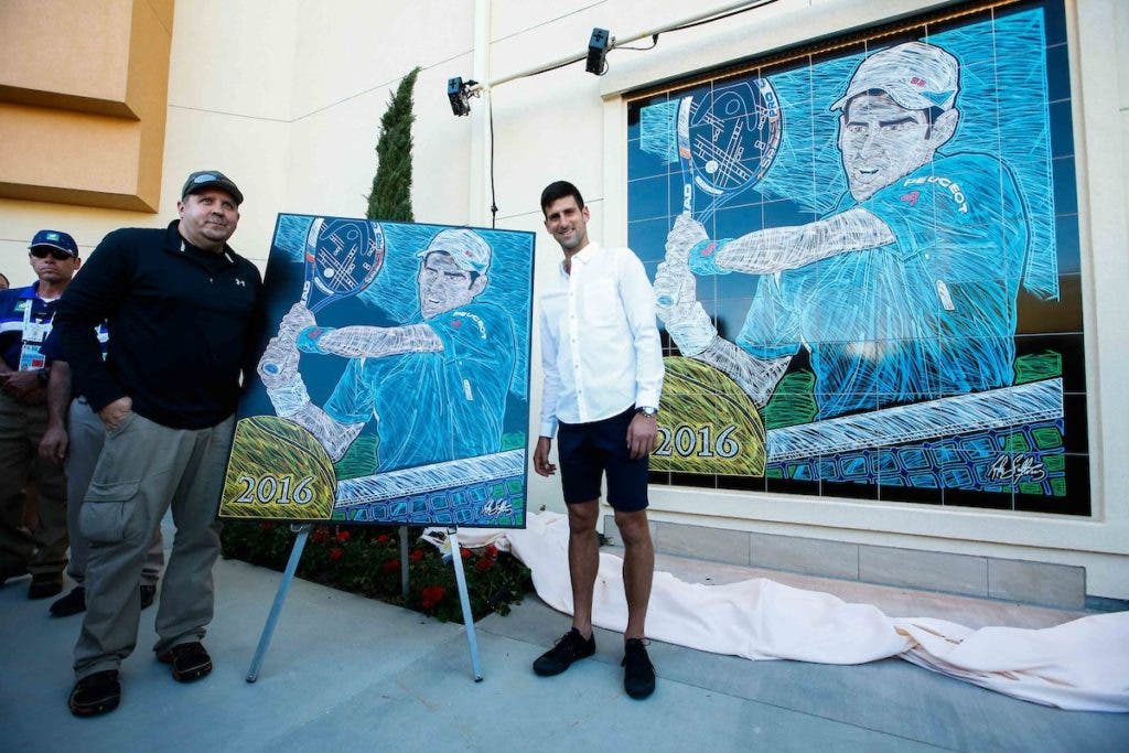 À semelhança do que sucedeu em 2015 e em 2016, o número dois mundial foi imortalizado pelo talento do conceituado Michael Sullivan, desta feita no Stadium Plaza. “O Michael é um grande artista e eu estou muito contente por nos podermos encontrar todos os anos, recentemente”, disse Djokovic. Espero que possamos manter a tradição”.