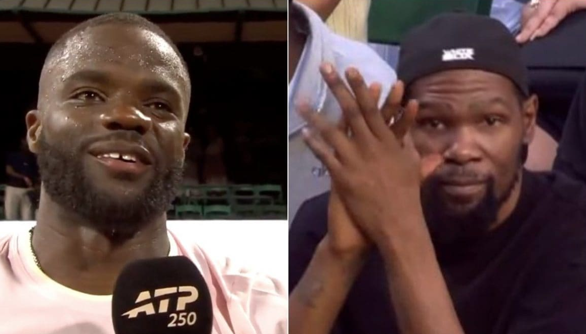 Kevin Durant, amigo de longa data de Frances Tiafoe, surgiu nas bancadas do ATP 250 de Houston acompanhado por vários outros jogadores dos Houston Rockets para assistir ao encontro do norte-americano.
