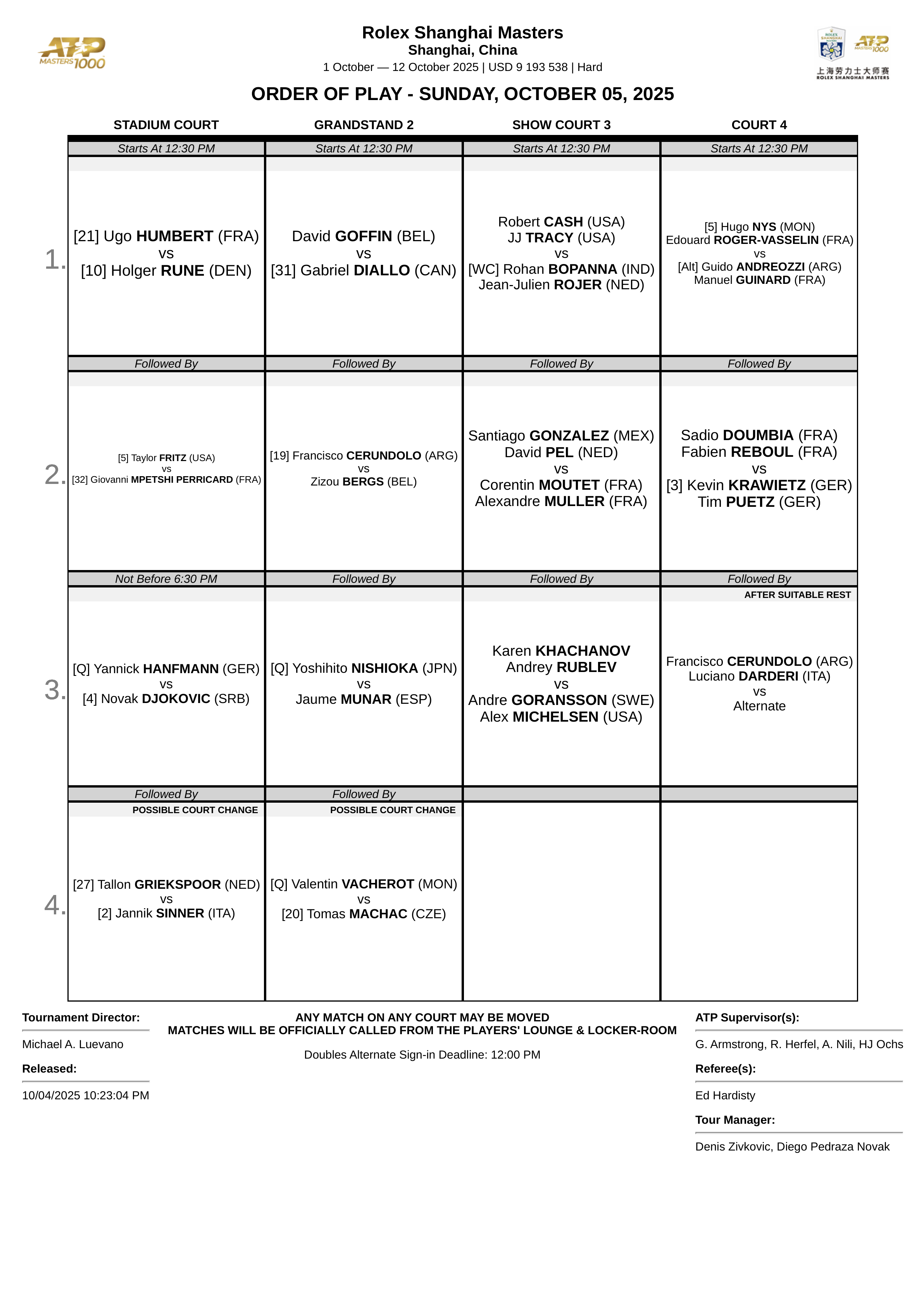 Eis o plano de festas para este domingo em Xangai com Sinner e Djokovic em destaque