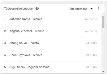 Quanto aos Estados Unidos, não há referência ao Open dos Estados Unidos, mas sabe-se que a palavra “tennis” foi escrita vezes suficientes no Google para a modalidade surgir no quarto lugar da lista das mais populares nos Jogos Olímpicos.