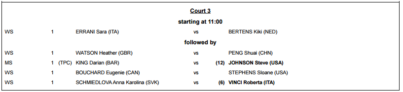 Consulte aqui a ordem de encontros completa, com a nota de que o fuso horário do Rio de Janeiro e de menos quatro horas comparado com o português. Ou seja, os encontros no Cour Central arrancam às “nossas” 14h45, e todos os outros courts começam às 15h.