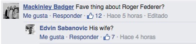 - O que é que preferes em Roger Federer? / A sua mulher?