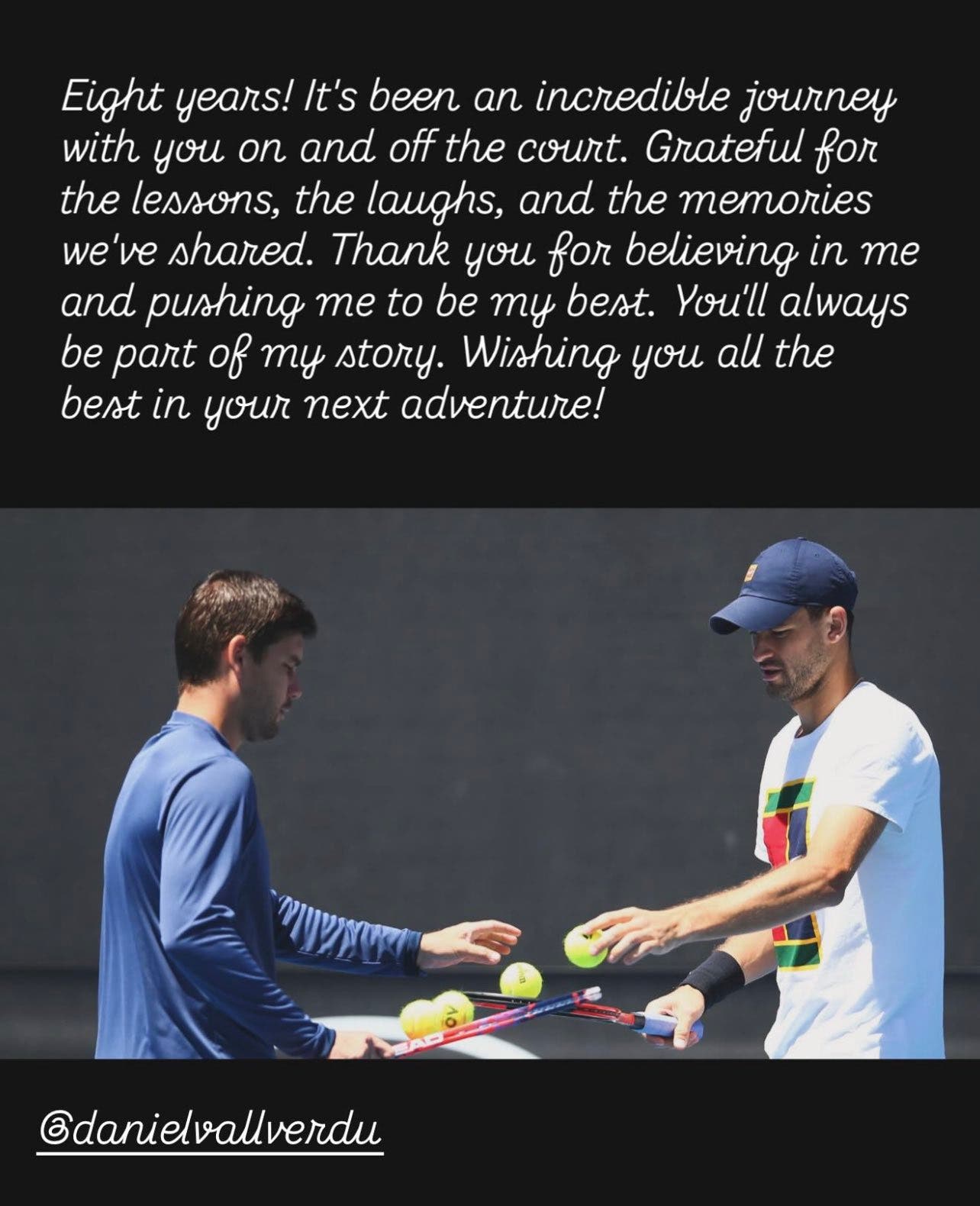 Dimitrov recorreu às redes sociais para confirmar a decisão, agradecendo a Vallverdu e desejando-lhe o melhor no futuro, destacando a “incrível jornada” que viveram juntos ao longo de quase uma década.