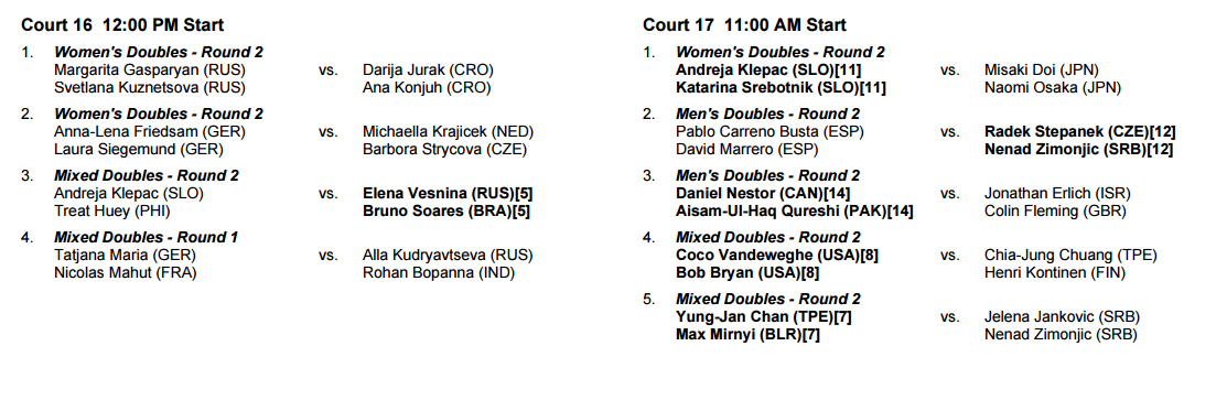 Já depois da eliminação para Ernests Gulbis em singulares, João Sousa e Leonardo Mayer vão defrontar a segunda ronda de pares frente ao australiano Chris Guccione e ao brasileiro André Sá. Confira aqui a ordem completa: