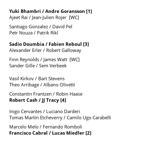 O quadro de pares também já é conhecido e conta com Francisco Cabral e Lucas Miedler. A cotada dupla luso-austríaca é a segunda da lista de cabeças-de-série.