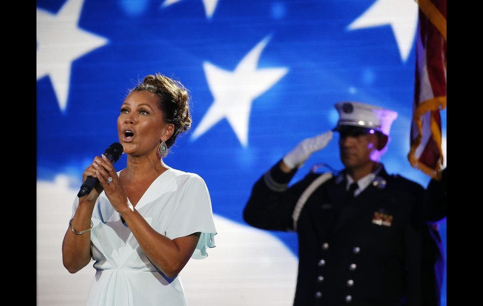- Vanessa Williams a cantar o hino norte-americano na cerimónia de abertura