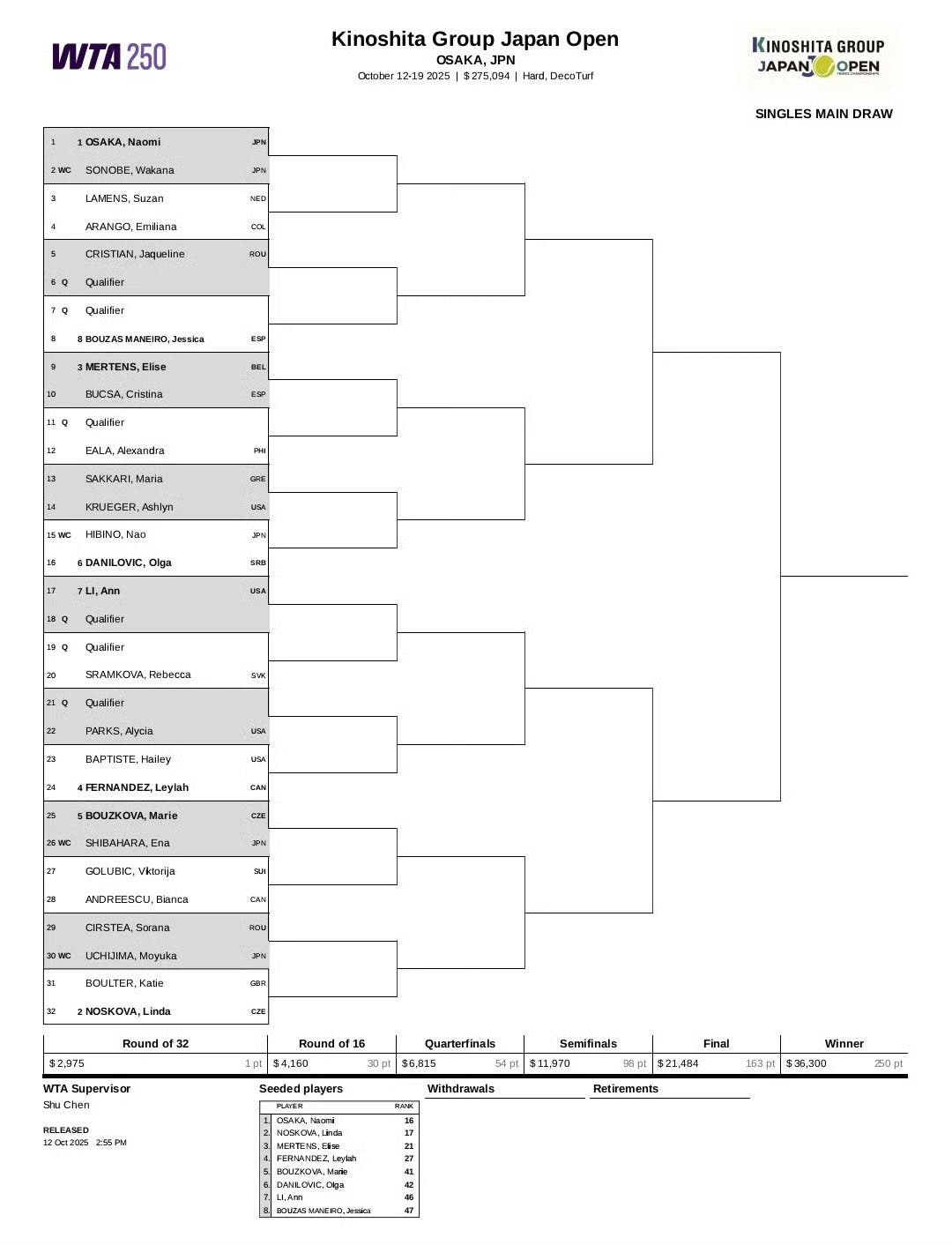 Osaka será a primeira cabeça-de-série… em Osaka: espreite o quadro