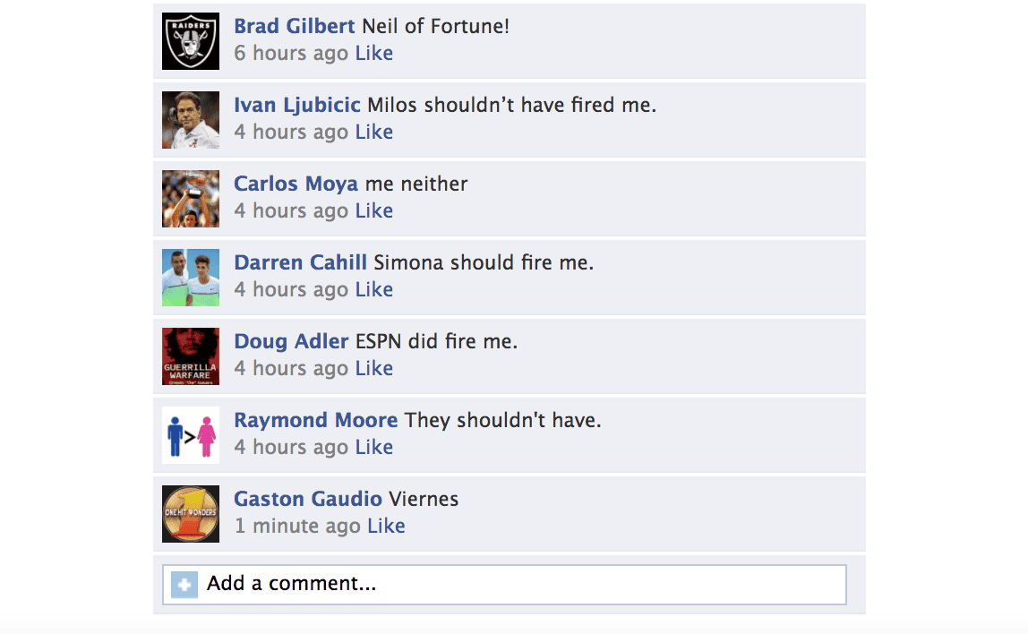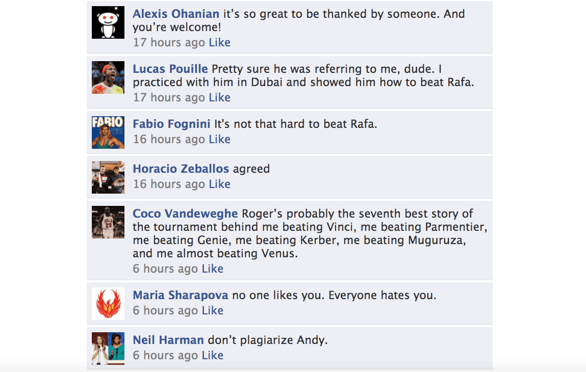 Paródia: quando os jogadores de ténis se põem a falar na caixa de comentários do Facebook