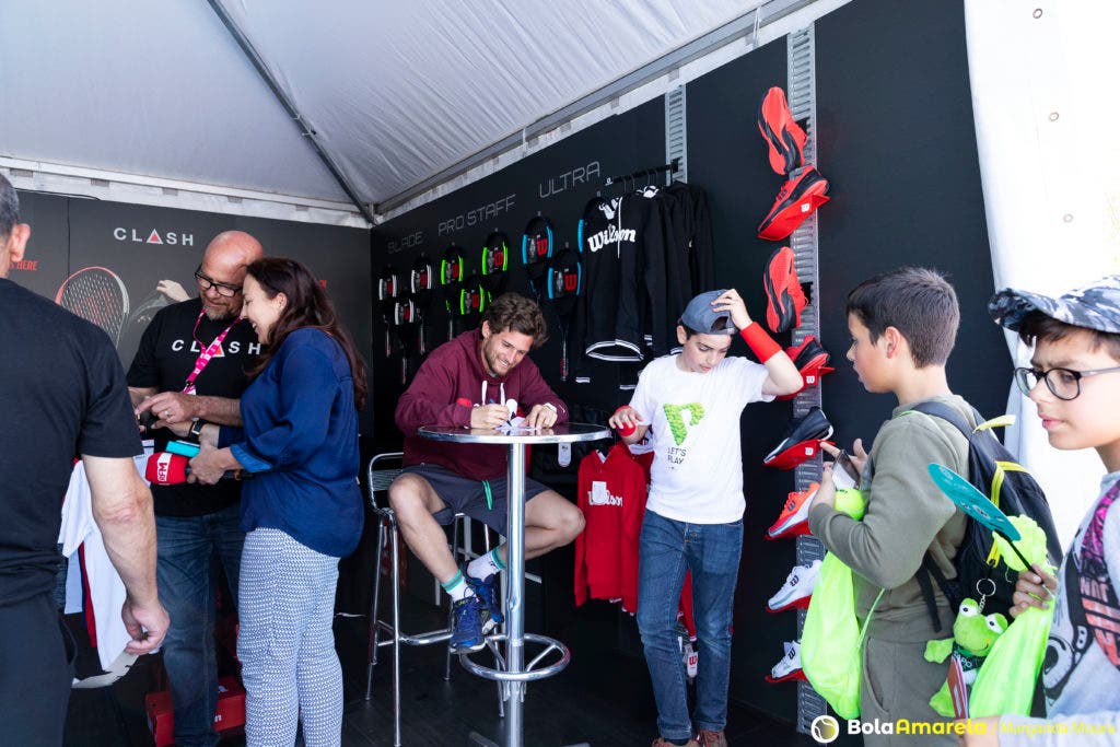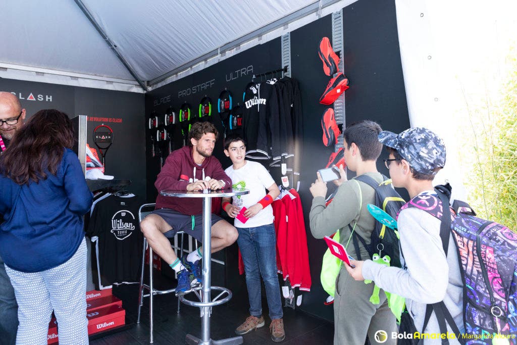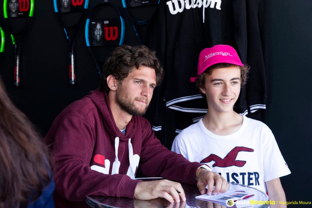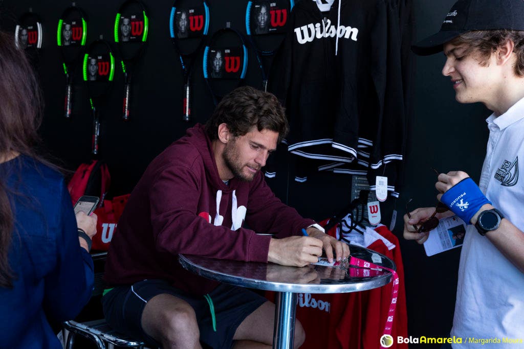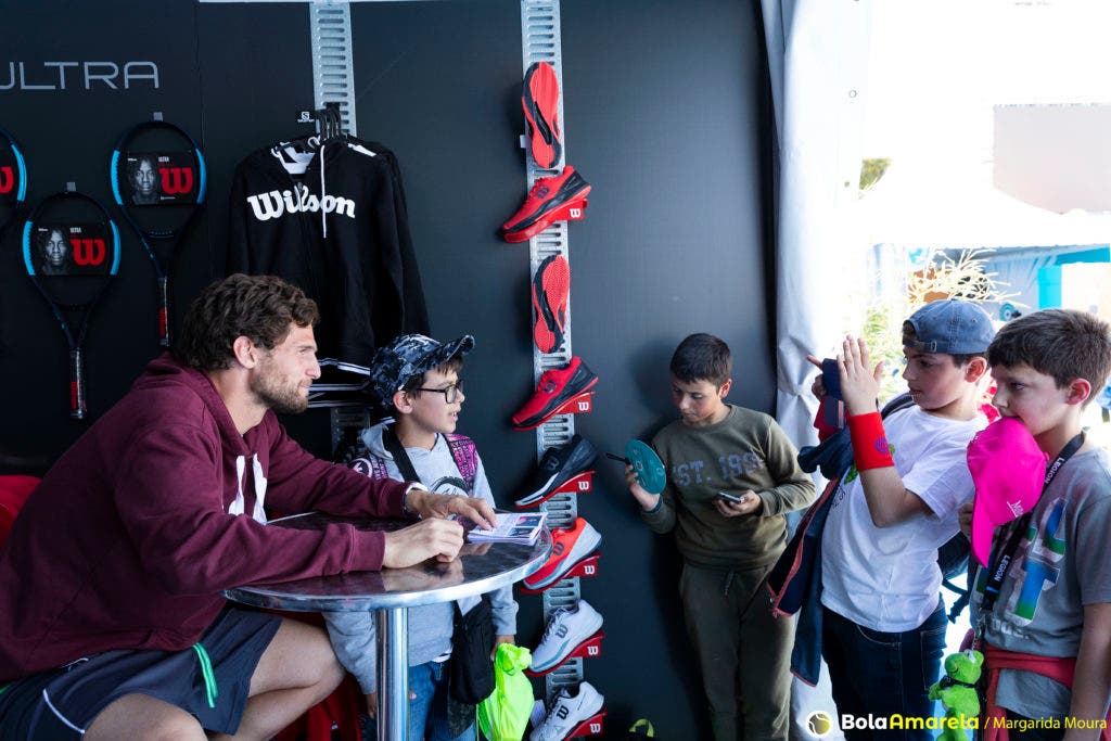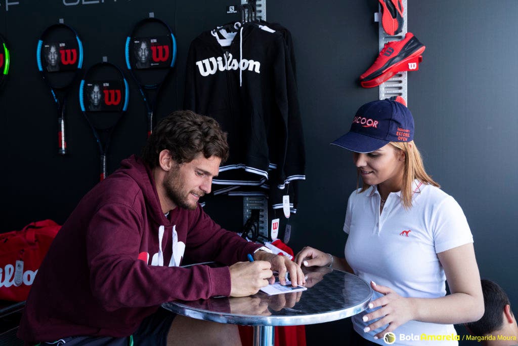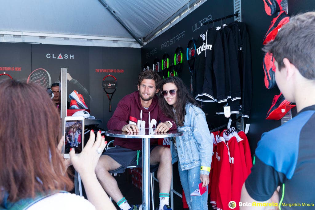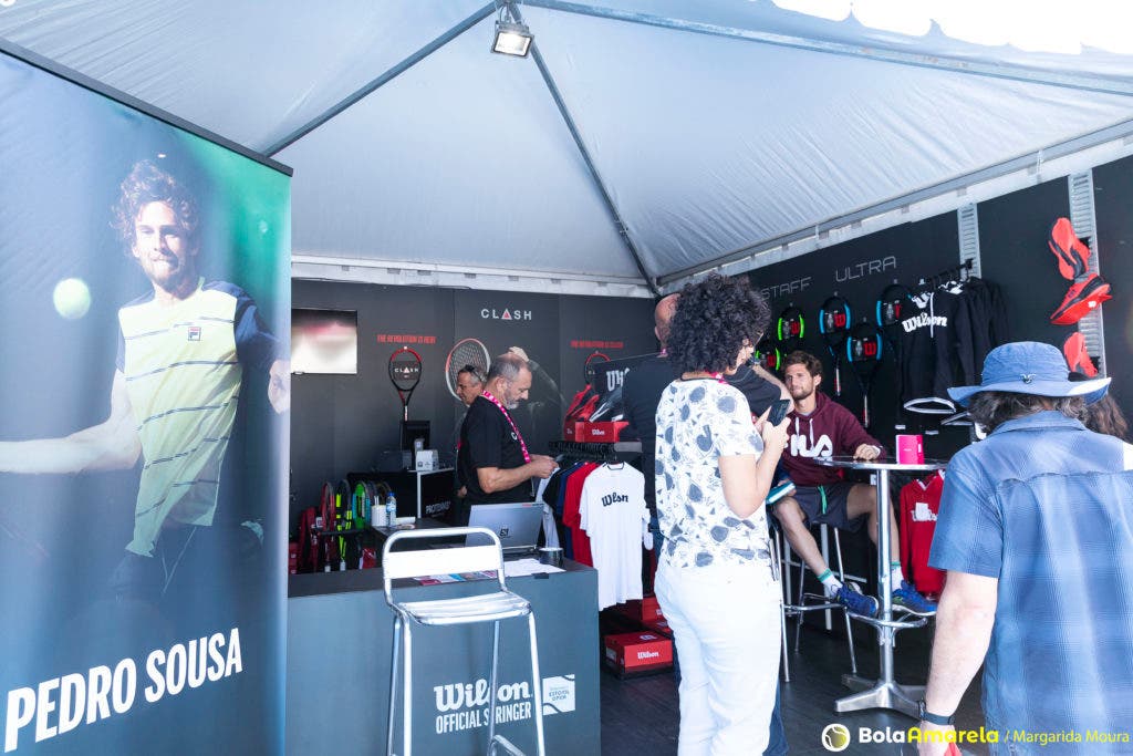 Foi no stand da Wilson, de caneta na mão e sorriso na cara, que fomos dar com Pedro Sousa neste sábado à tarde, antes de rumar ao court para mais um treino. À sua frente, uma fila de miúdos (e muitos graúdos), sem fim à vista, esperava por um autógrafo e por a ‘tal’ fotografia que faria disparar os likes no Instagram.