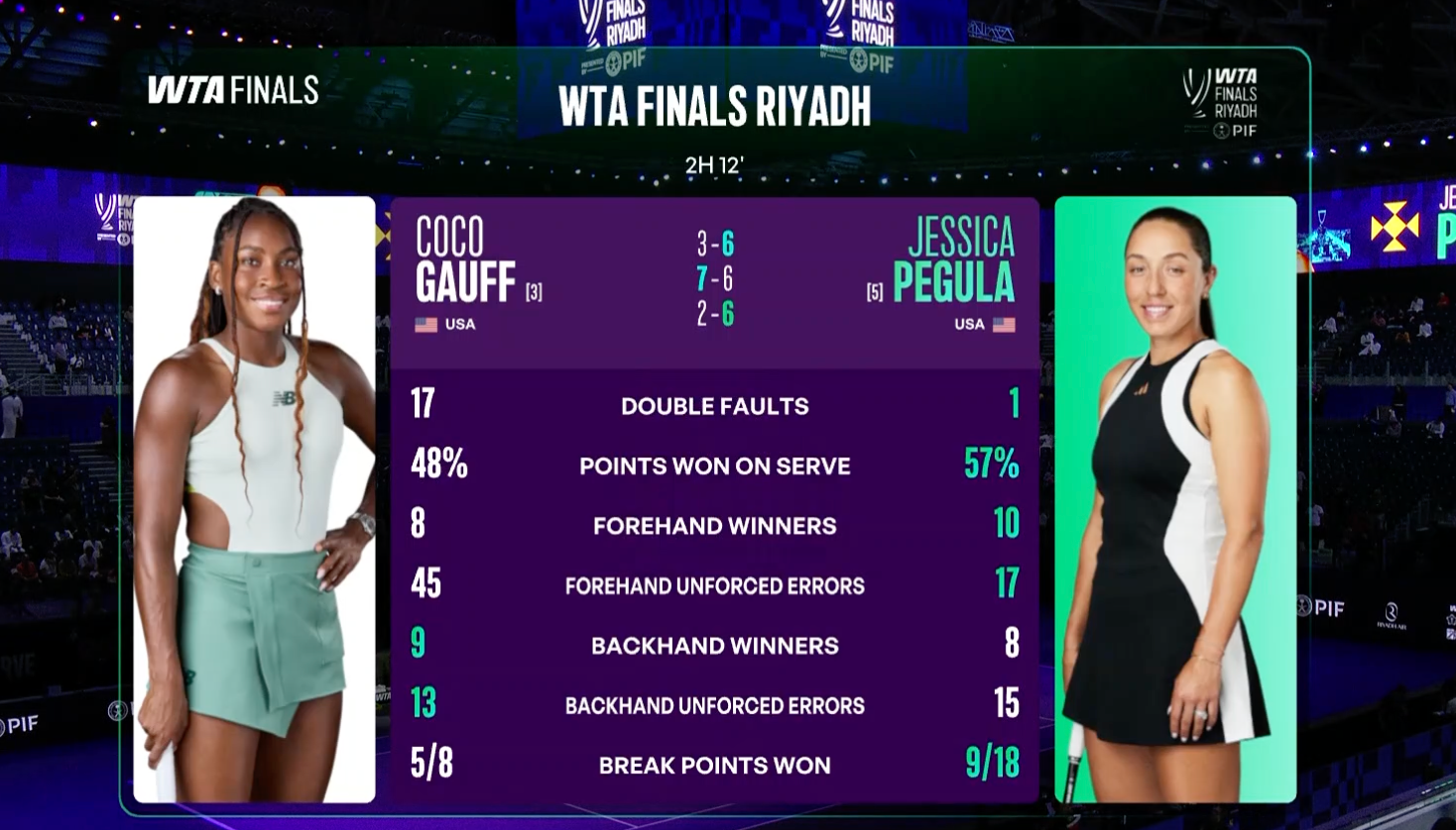 Hey Jessie! 👋@JPegula fights her way through another three set match to defeat Gauff 6-3, 6-7(4), 6-2. #WTAFinalsRiyadh pic.twitter.com/k0vKz2Mt4a