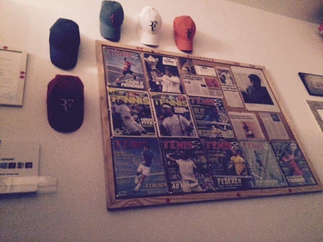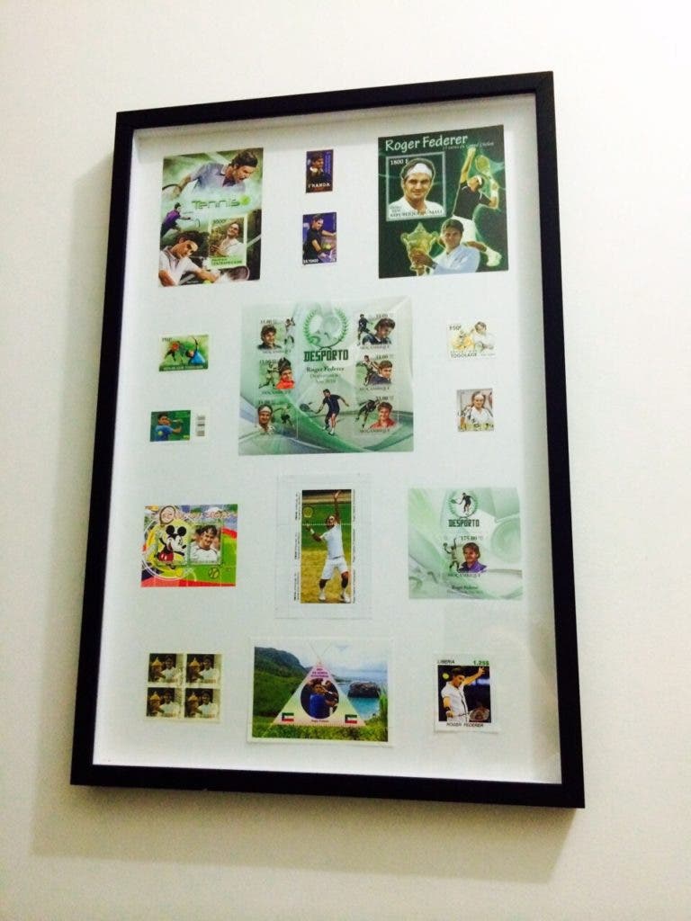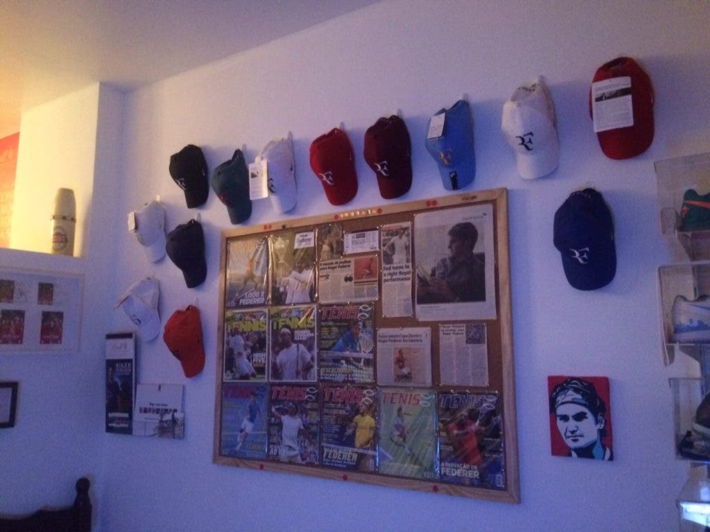 Mas o que tem Júlio Matteo de diferente de tantos outros fãs de Roger Federer? Várias coisas. Mais precisamente, cerca de 300 coisas. Pólos, t-shirts, selos de vários países, revistas, jornais, canecas, posters, toalhas, quadros, e por aí fora… todos estes itens estão, de alguma forma ou de outra, relacionados com Roger Federer. Júlio fez até questão de nos enviar um vídeo a mostrar algumas das peças de vestuário mais valiosas: