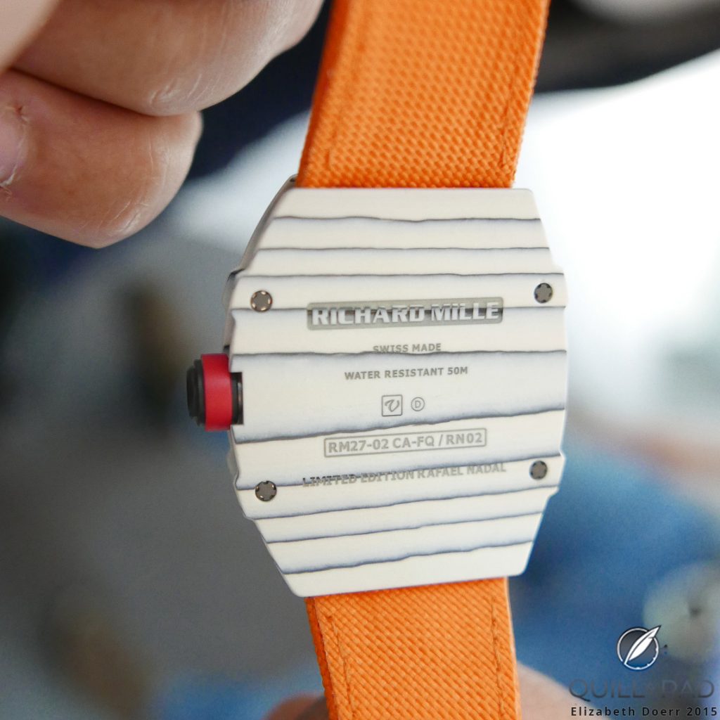 Com uma bracelete originalmente laranja, e com um elevado número de operações realizadas à mão para garantir que nada falha, o RM 27-02 vai ter apenas 50 edições devido ao seu alto custo de produção. “É por isso que nós somos considerados a Fórmula 1 do negócio de relógios: estar constantemente a desenvolver e disponibilizar somente algumas unidades. Mas isto que nós adoramos fazer”, disse Richard Mille.
