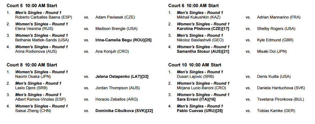 No primeiro dos dois, Stan Wawrinka, campeão em título, dá início à sua jornada em Paris logo às 10h da manhã, hora portuguesa, seguido pelas exibições de Kei Nishikori, Agniezska Radwansa e a local Alize Cornet. Garbinie Muguruza abre as hostilidades no Suzanne-Lenglen, onde também vão jogar Gilles Simon, Richard Gasquet e Ana Ivanovic.