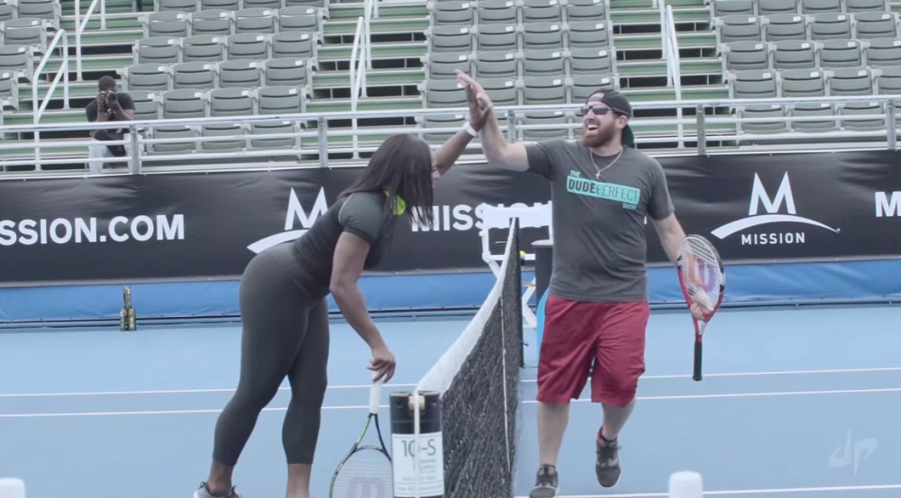 Com quase dez milhões de subscritores no YouTube e com mais de 1,6 mil milhões de visualizações, os Dude Perfect são conhecidos nos quatro cantos do planeta pelas suas proezas e pontaria fora do normal. Este grupo de amigos, que já realizou vídeos com várias estrelas do basquetebol, golfe e futebol, convidou desta vez Serena Williams e levar o ténis até ao canal. O resultado, como não podia deixar de ser, foi fantástico.