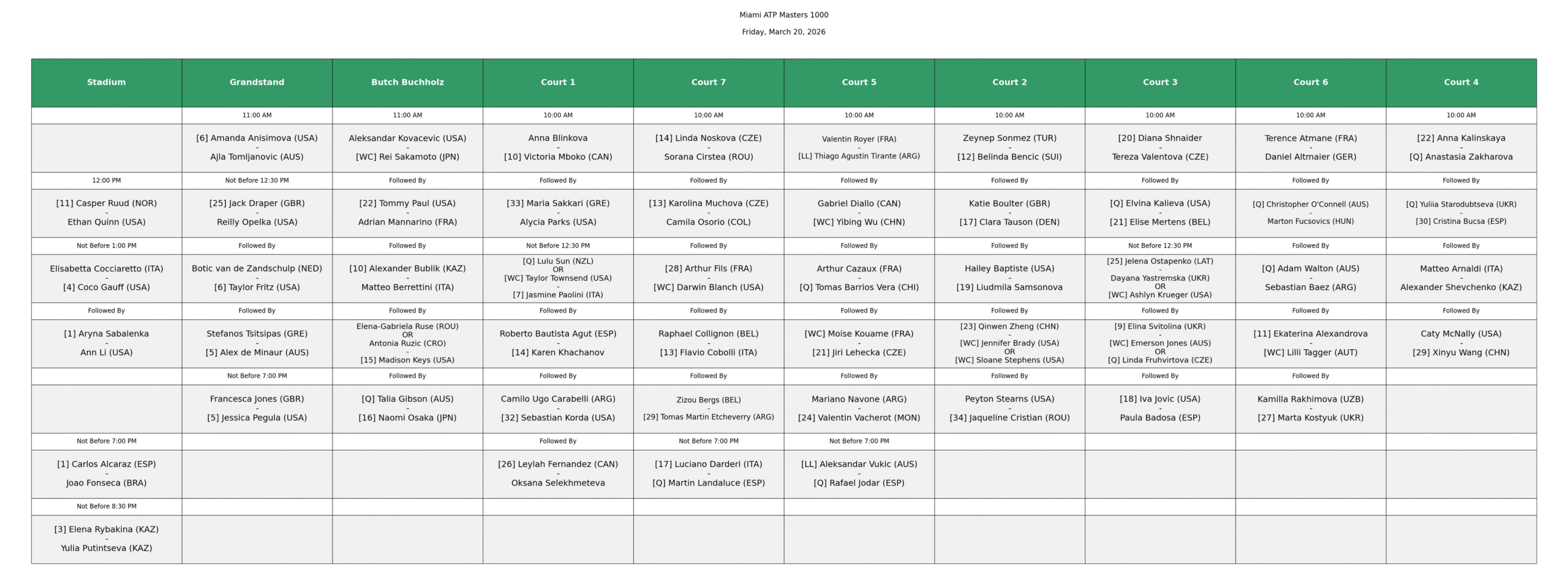 Desmarque tudo o que tem para fazer nesta sexta-feira. É que a ordem de jogos do Miami Open é simplesmente brutal, com 52 (!) encontros de singulares, incluindo uma grande parte das maiores estrelas do ténis mundial.