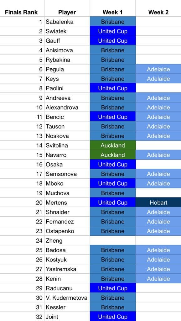 Tudo definido: onde é que o top 30 WTA vai jogar até ao Australian Open