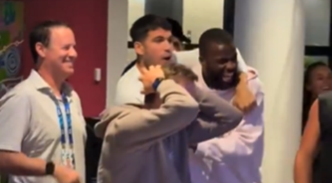[VÍDEO] Alcaraz e Tiafoe foram à loucura com título de tenista amador no 1-point Slam