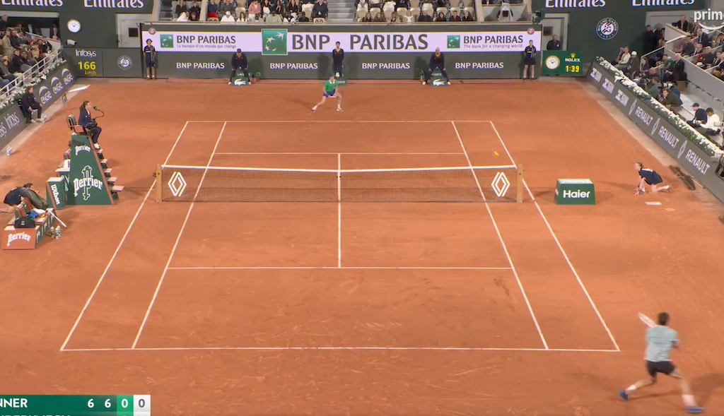 Arthur Rinderknech perdeu com Jannik Sinner em sets diretos na primeira ronda de Roland Garros mas no terceiro set ainda ameaçou e liderou por 4-0 e 5-2 graças a ténis… deste nível.