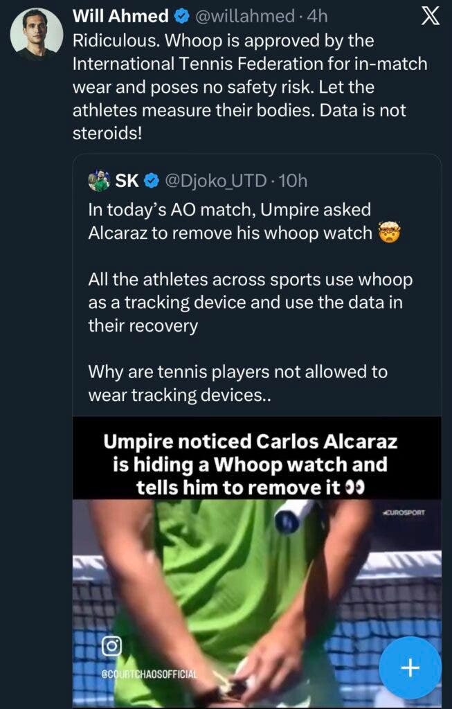 A medida, justificada pelos organizadores com base na necessidade de proteger a integridade competitiva e evitar qualquer vantagem tecnológica em tempo real, foi comunicada a meio do torneio, apanhando jogadores e equipas técnicas de surpresa. O WHOOP, usado discretamente no pulso ou braço, recolhe dados sobre esforço, fadiga, recuperação e sono, sendo considerado por muitos atletas uma ferramenta essencial na gestão do corpo ao mais alto nível.